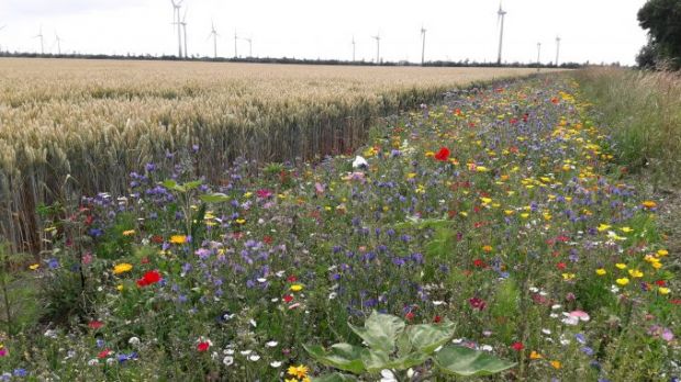 Angelegt wird ein Blühstreifen von min. 6m und max. 30m Breite dabei muss die Aussaat der Blühmischung spätestens bis zum 15. Mai erfolgen. Die Blühmischung besteht aus 70 Prozent Wildpflanzen und 30 Prozent Kulturpflanzen. Die Wildpflanzen sind ausschließlich aus zertifiziertem und gebietsspezifischen Regiosaatgut zusammengestellt. Dabei hat der Hersteller ein Zertifikat, das die regionale Herkunft und die Produktion des Wildpflanzensaatguts in der Region bescheinigt. Die Wildpflanzen bestehen aus bis zu 21 verschiedenen Pflanzen und die Kulturpflanzen aus bis zu 12 verschiedenen Pflanzen, die je nach Standort ausgesät werden. Das artenreiche Saatgut ermöglicht für den Zeitraum der Patenschaft ein vielfältiges Blüten- und Nahrungsangebot. Der Einsatz von Pflanzenschutzmitteln und Düngemitteln ist auf der Blühfläche natürlich untersagt. Zudem wird der Aufwuchs nicht genutzt. Ein Pflegeschnitt auf mind. 30 Prozent und max. 70 Prozent der Fläche ist für die bessere Entwicklung der Fläche vorteilhaft und wird nur am späten Abend oder an regnerischen Tagen durchgeführt, wenn kein Insektenflug stattfindet. Dieser darf nur zwischen dem 10. Juli und dem 1. April durchgeführt werden, da ansonsten Pflanzen und Tiere unter der Maßnahme leiden könnten.